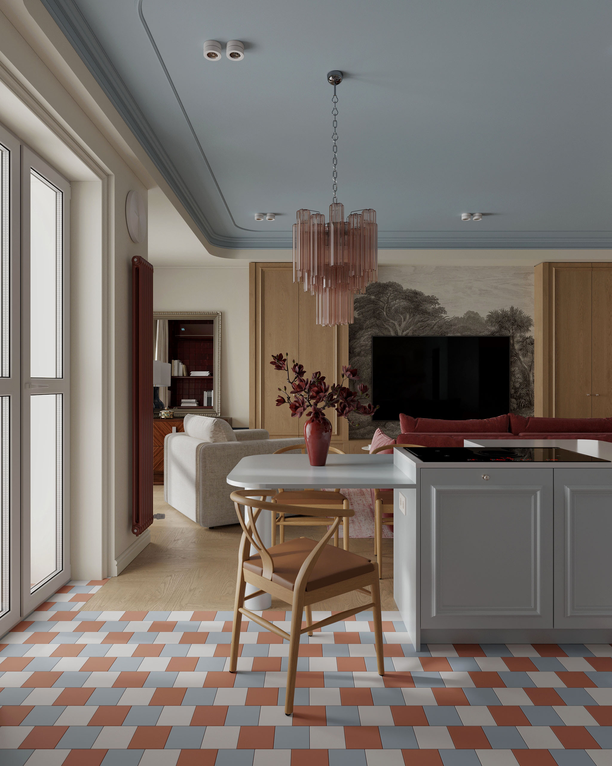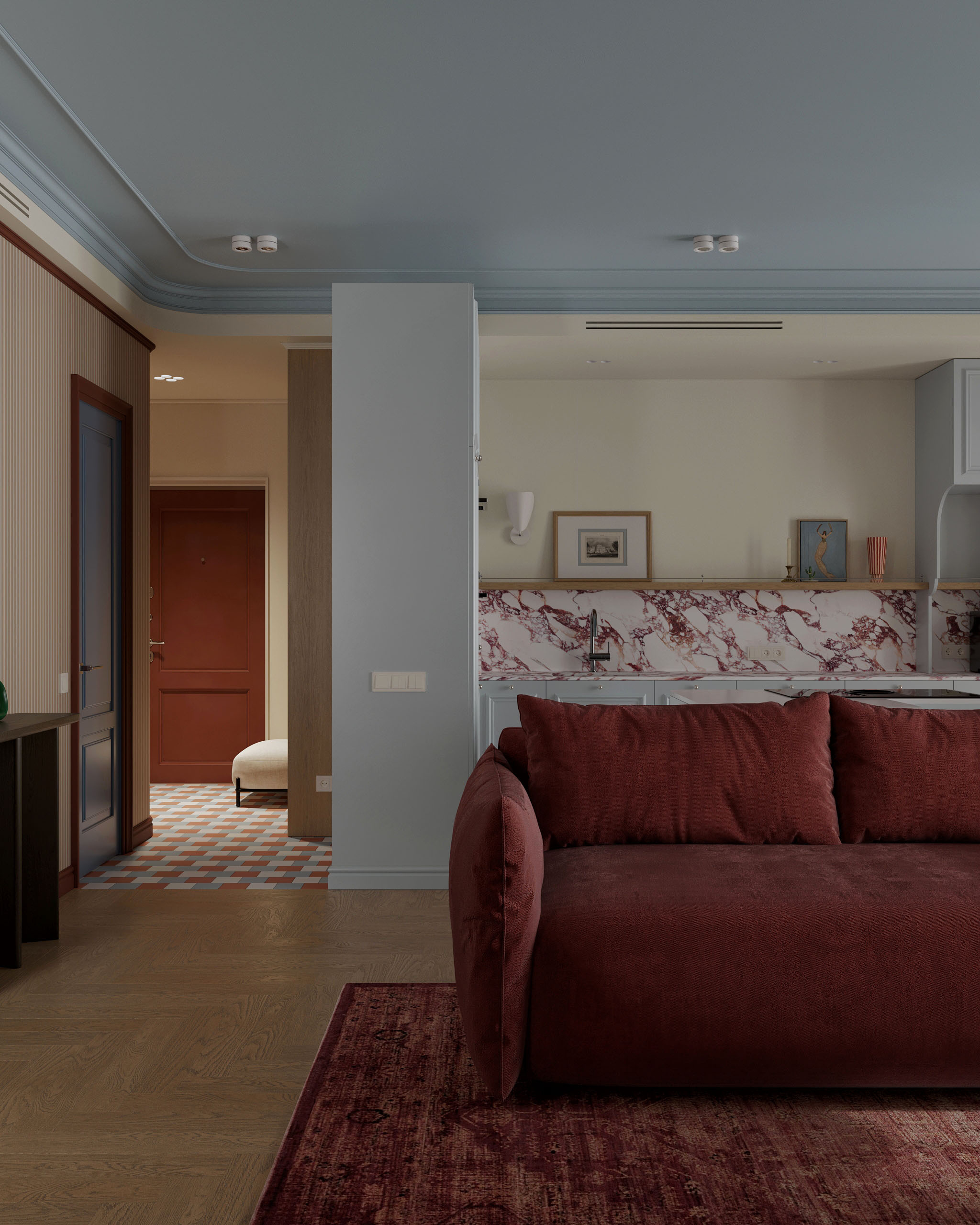 Фарфоровый. Проект интерьеров цветной квартиры в г. Минске